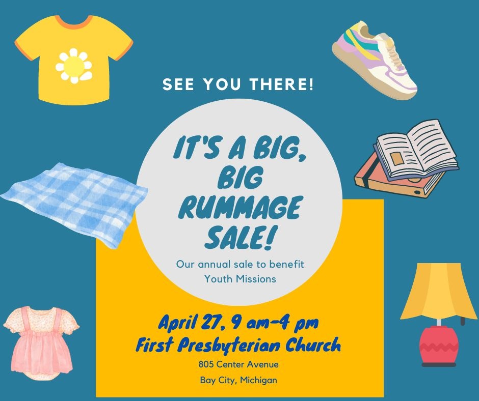 Find great deals on clothes, jewelry, footwear, holiday, books, and housewares at the First Presbyterian Church of Bay City Annual Rummage Sale.